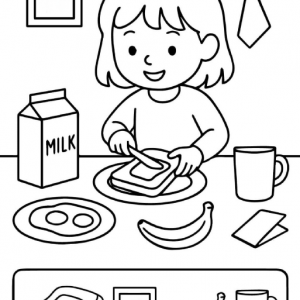 At first glance this illustration feels simple and cheerful. A young girl sits at the table enjoying breakfast. In front of her is a plate with toast,…
