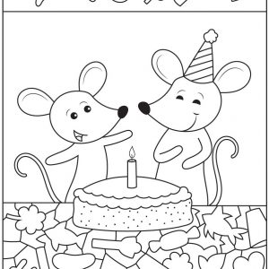 At first glance this illustration looks like a simple and adorable birthday moment. Two cheerful mice stand together behind a cake with a single candle glowing on…