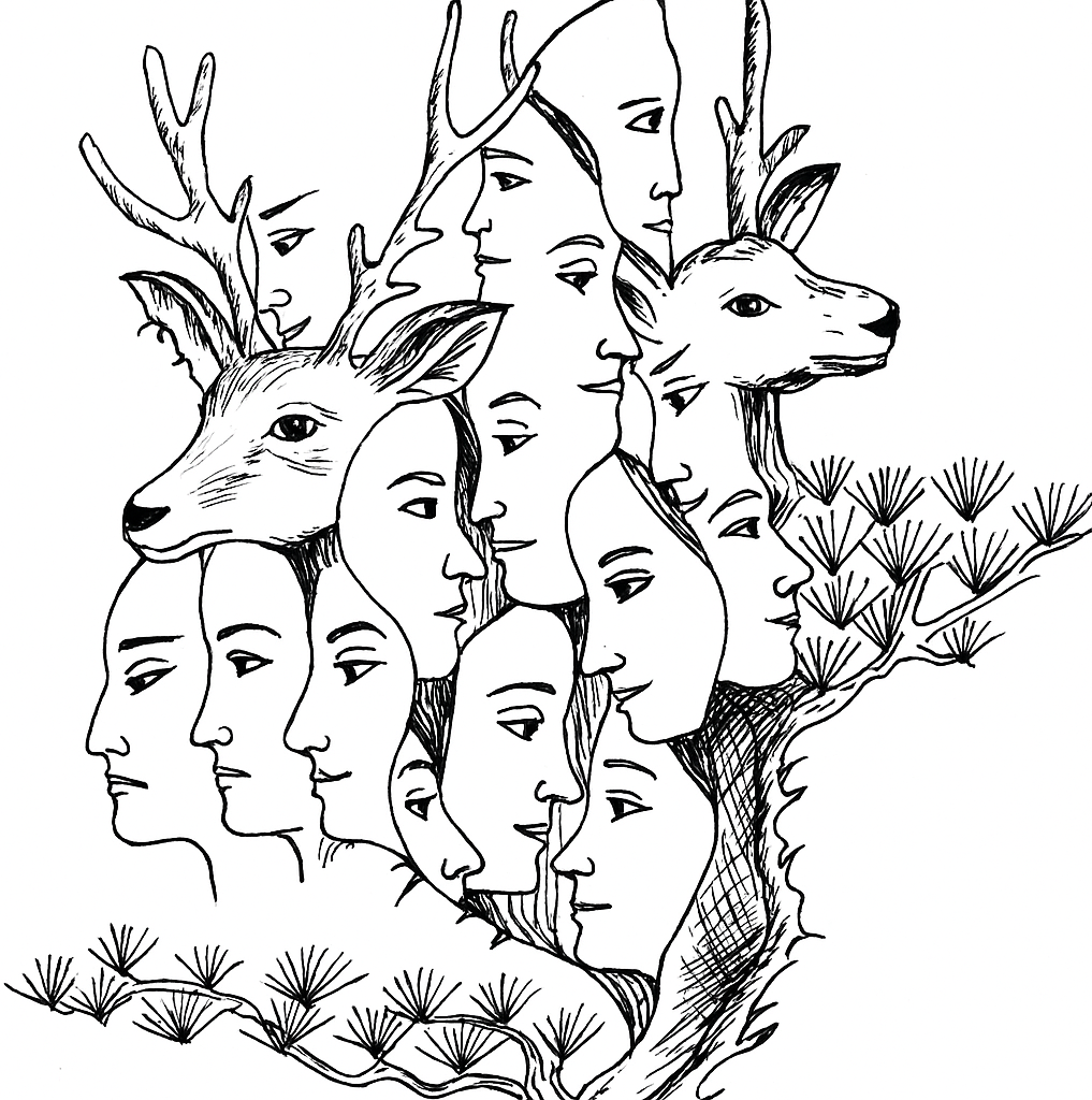- Are the faces part of the deer, or are the deer emerging from the faces?