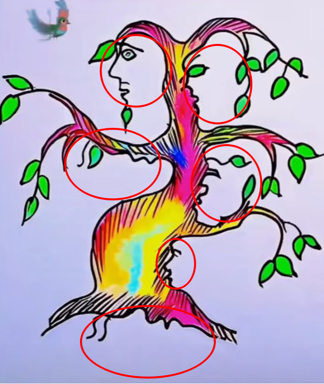 This face-in-a-tree optical illusion is more than a clever drawing. It’s a visual conversation between nature, identity, and perception. What starts as a colorful tree transforms into a collection of thoughtful faces—each one waiting to be noticed.