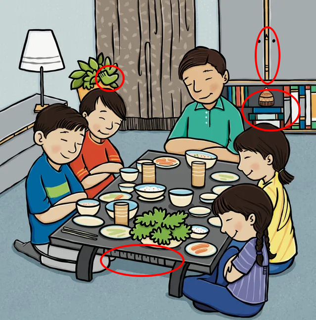 Like a hidden object puzzle, this scene invites us to look beyond the obvious. At first, we see just a family eating together. But as we study the details — the tender smiles, the calm posture, the soft light — we uncover deeper layers of meaning.