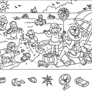 Find the fork, pencil, fish, notebook, magnet, shovel and butterfly.