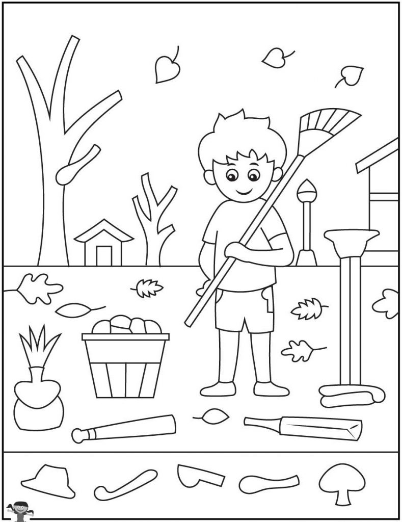 One look at this picture and you can almost hear the crunch of leaves under your feet. A young boy stands in the yard holding a rake, surrounded by falling leaves, simple tools, and quiet signs of autumn. At first, it feels calm and straightforward. Then you notice something else. This is not just a peaceful fall scene. It is a find it puzzle designed to challenge your eyes, slow your mind, and pull you into the details.