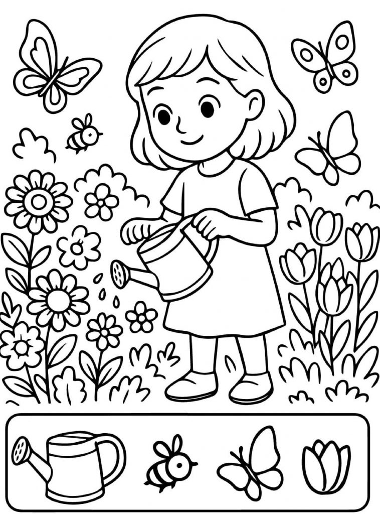 This lovely illustration of a young girl watering flowers captures everything enchanting about childhood and the natural world. With butterflies fluttering, bees buzzing, and flowers blooming brightly around her, the scene becomes a gentle celebration of growth, curiosity, and kindness. It’s a reminder that even the smallest hands can care for something beautiful—and that sometimes, the purest joy comes from simply helping something grow.