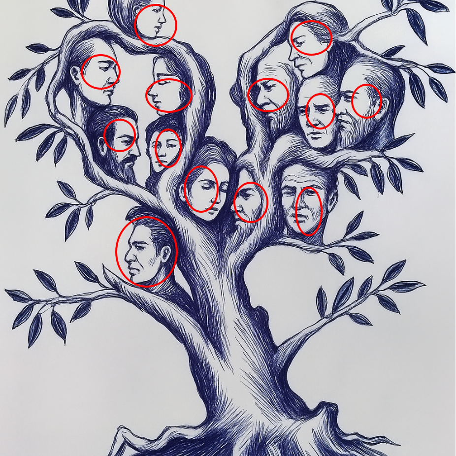 At first glance, this image might seem surreal — human faces seamlessly merging with the twisting limbs of a tree. But look closer, and you’ll see that it captures something deeply human: our desire to connect with our ancestry and understand the lives that came before us.