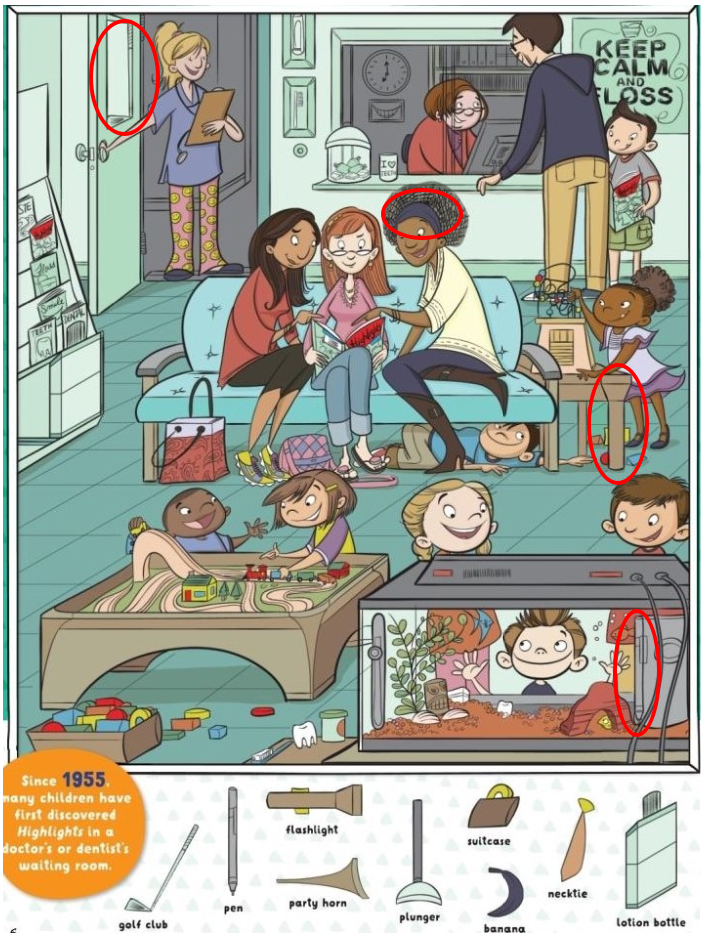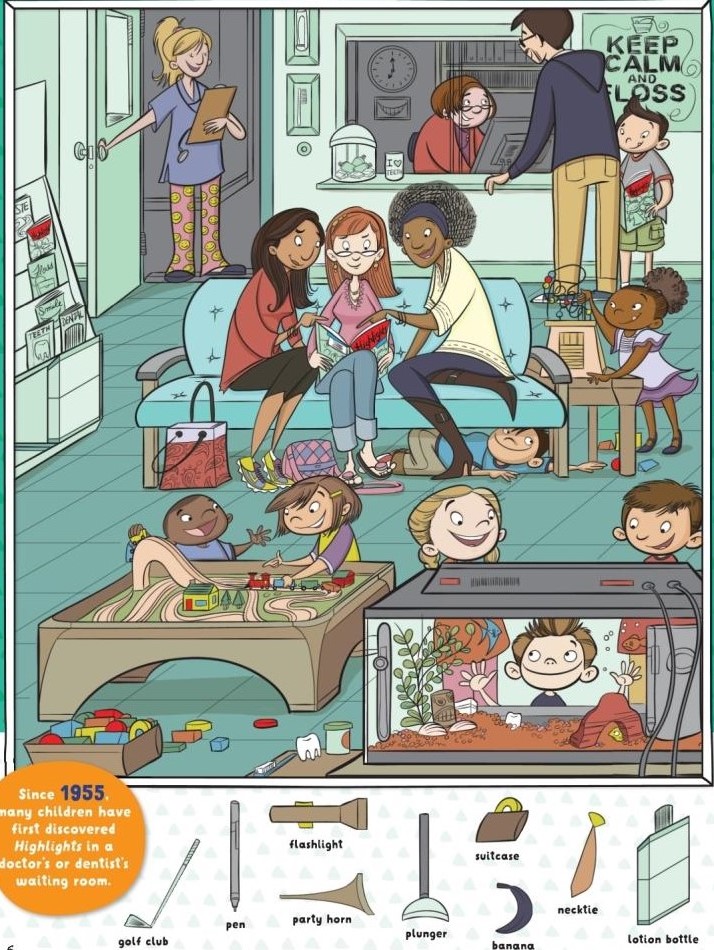 This illustration captures a moment that feels incredibly real. Kids stuck waiting, adults trying to stay calm, and a room filled with tiny details that turn boredom into play. It is the kind of image that invites you to pause, smile, and start searching.