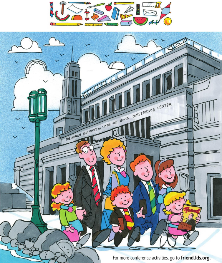 This illustration captures something quietly powerful. A family walks together past a grand conference center on a bright day. The building feels solid and meaningful. The people feel light joyful and connected. At first it looks like a simple cartoon scene. But the longer you look the more it opens up into a story about family values shared learning and moments that stay with you long after the walk is over.