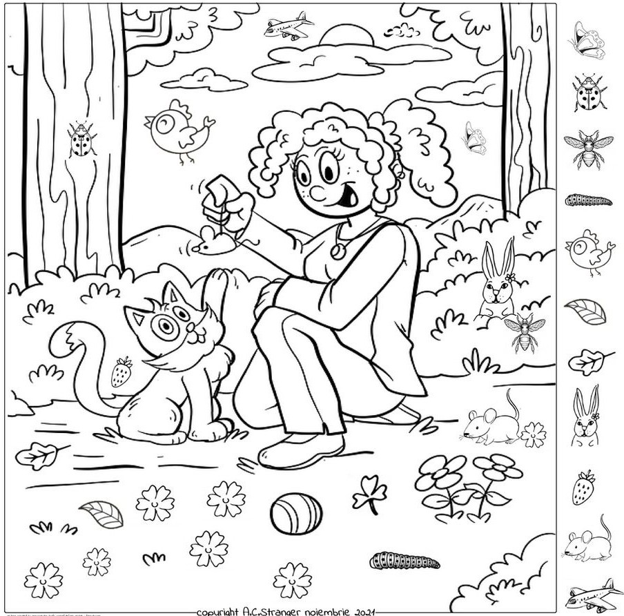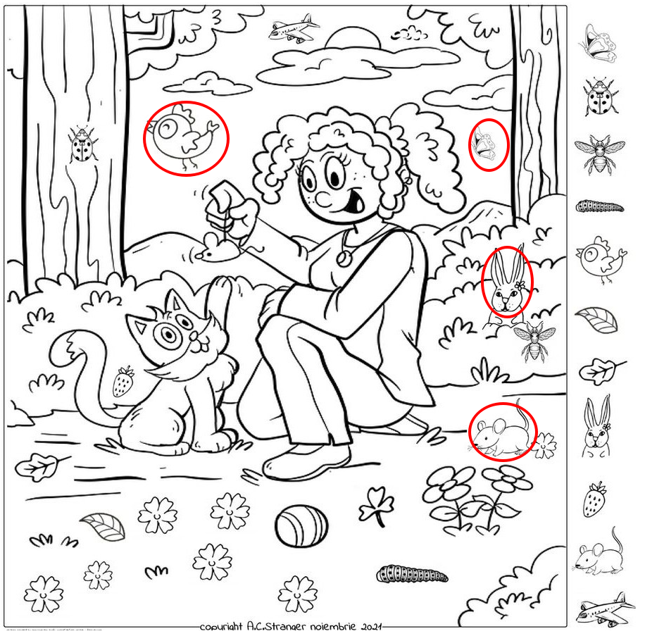 This image isn’t just a sweet outdoor scene. It’s a hidden-objects puzzle cleverly disguised as a coloring page, designed to challenge your focus, spark curiosity, and quietly sharpen your brain. The more you look, the more secrets you uncover.