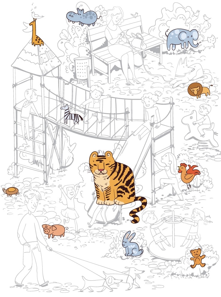 This hidden tiger playground puzzle transforms a cheerful park scene into a thoughtful visual challenge that sharpens focus, builds patience, and rewards curiosity. What begins as a simple illustration slowly reveals layers of detail waiting to be discovered.