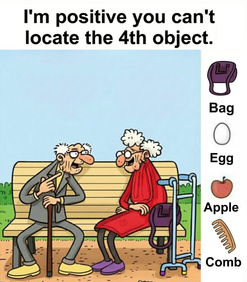Your brain is designed for efficiency. When you look at a scene, you process it in broad categories. Two elderly people. A bench. A walker. A handbag. A sunny day.