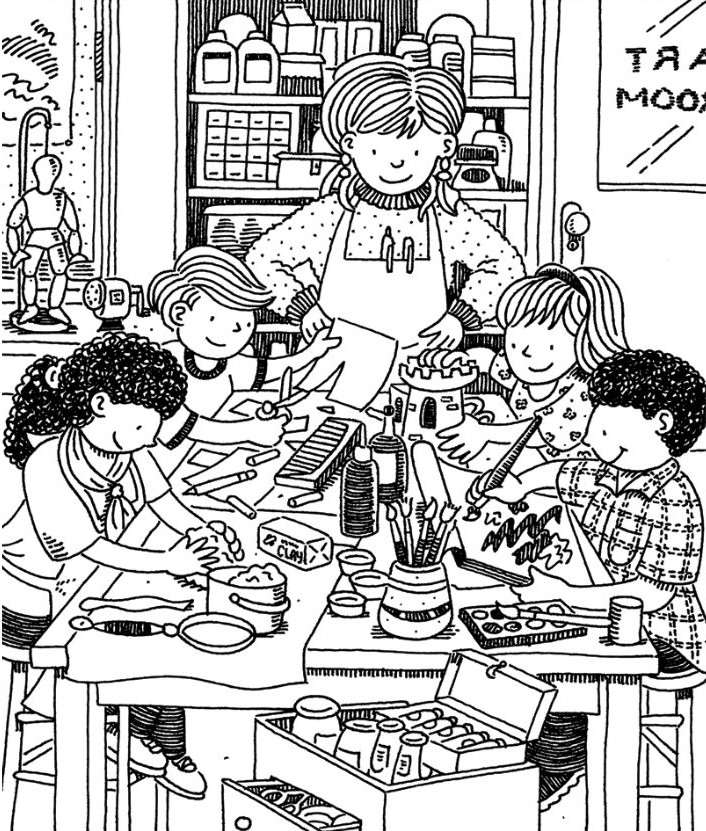This delightful craft room illustration beautifully captures the magic of creativity, learning, and teamwork. From the bustling table full of supplies to the focused expressions of the children, the scene reminds us how important it is to give kids the space and freedom to explore their artistic side. It’s more than just a picture—it’s a celebration of imagination, skill-building, and joyful learning. Whether you’re a parent, teacher, or art lover, there’s something inspiring here for everyone.