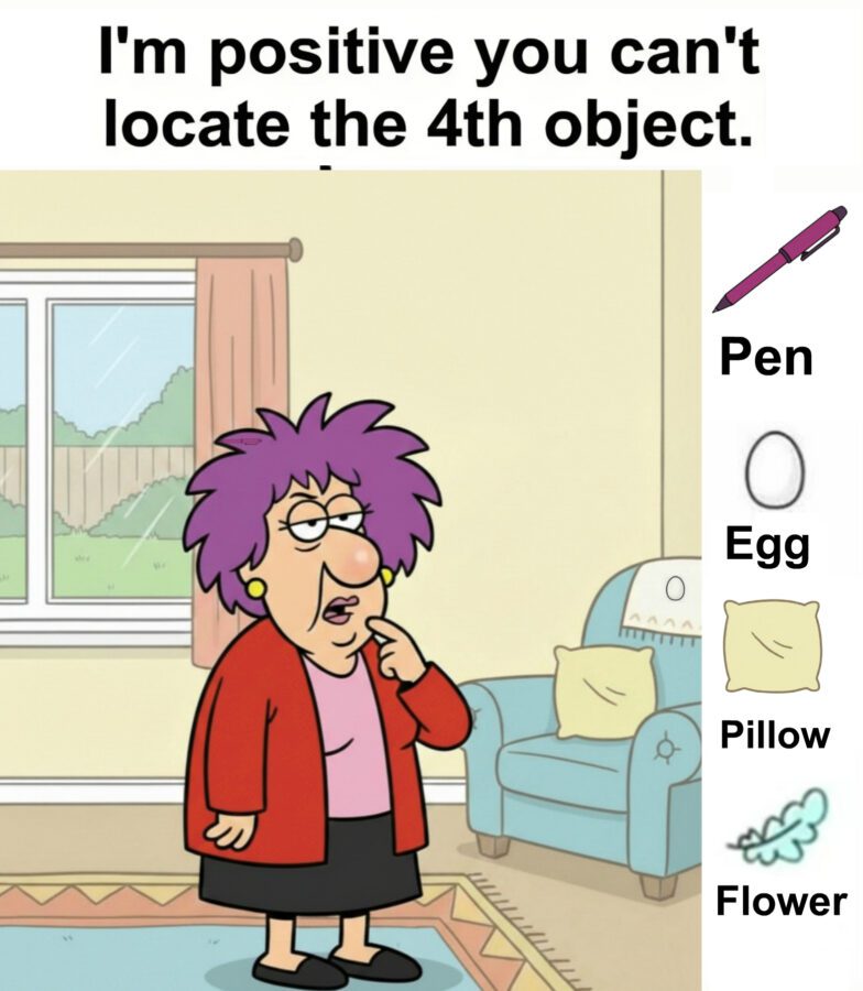 The phrase I’m positive you can’t locate the 4th object is psychological. It challenges you. It activates your competitive instinct.