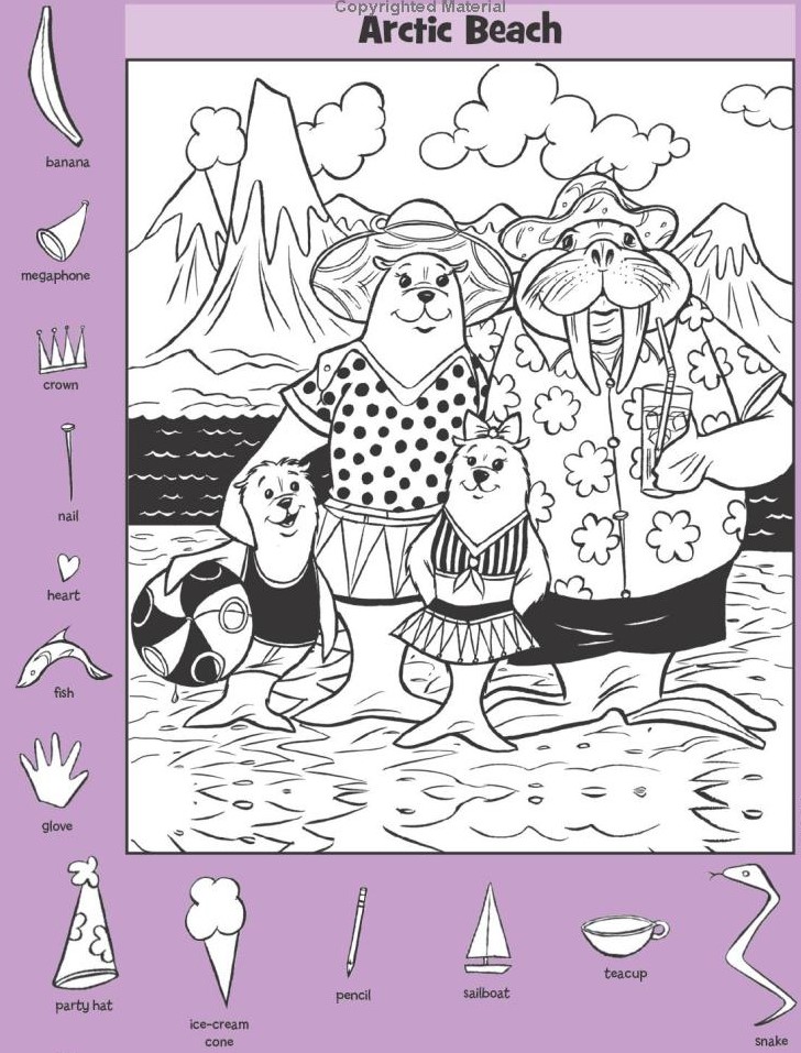 A random hidden object page fades quickly. A themed scene tells a story. Arctic Beach feels like a moment frozen in time. A family vacation in the cold. A playful contradiction.