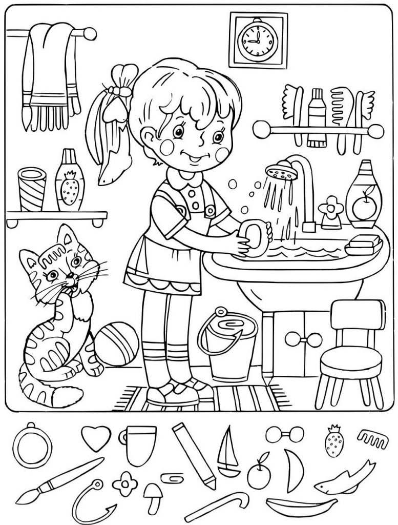 This hidden objects bathroom coloring page transforms a simple daily routine into a joyful learning experience. What begins as a friendly illustration of hand washing becomes a thoughtful activity that builds focus, confidence, patience, and creativity.