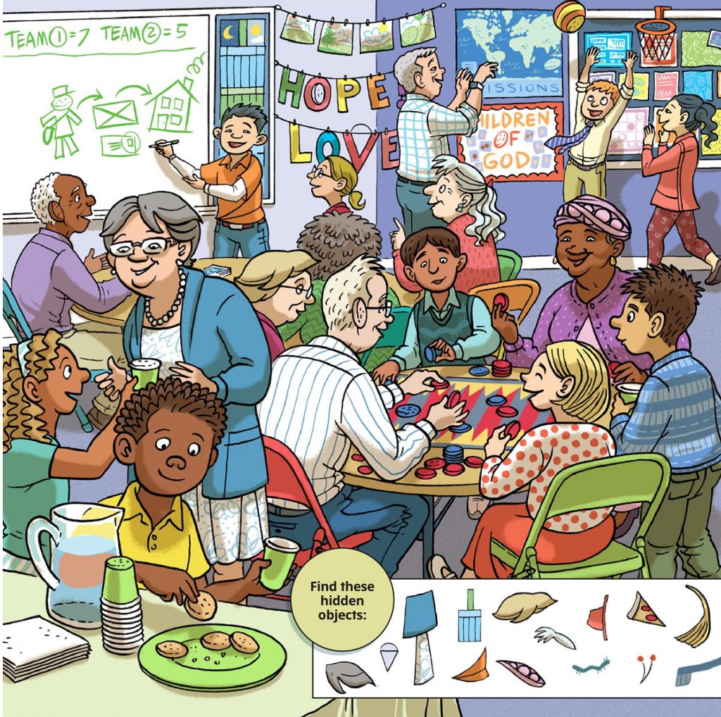 A Joyful Community Gathering Puzzle: Discover Hidden Objects in a Heartwarming Scene