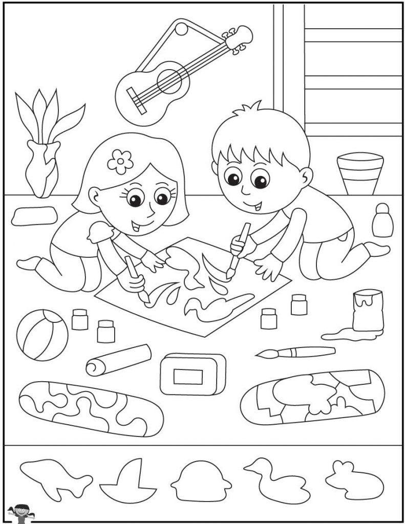 This creative kids art coloring page offers far more than a charming indoor painting scene. It combines artistic expression, hidden shape discovery, and cognitive development into one interactive experience.