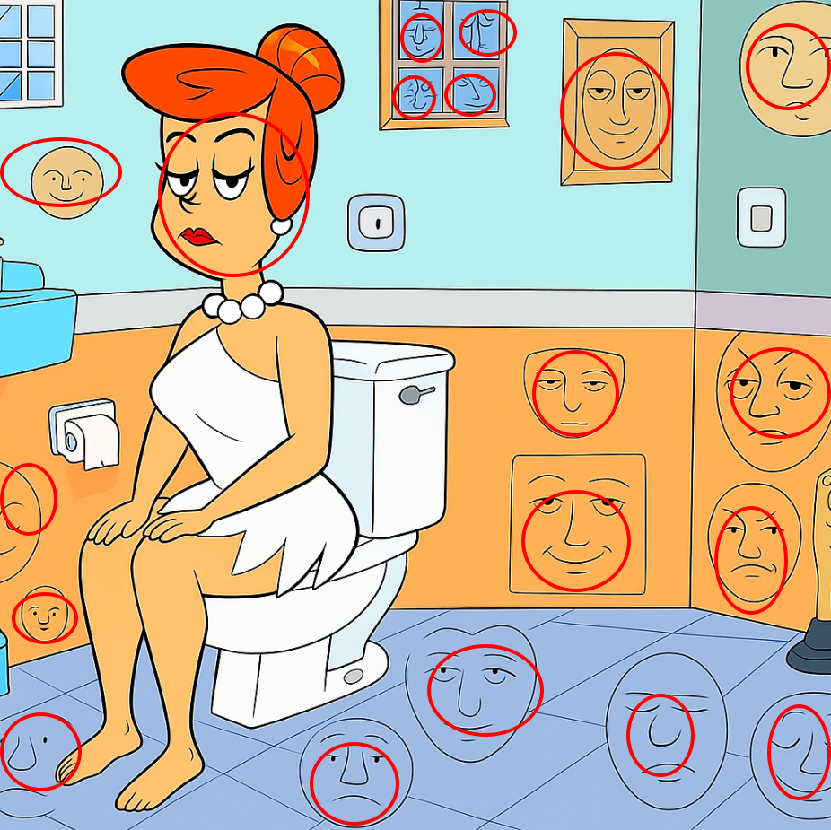 Of course, part of the image’s charm lies in its playful absurdity. The idea of spotting faces in a bathroom adds a humorous twist, making the challenge lighthearted and relatable.