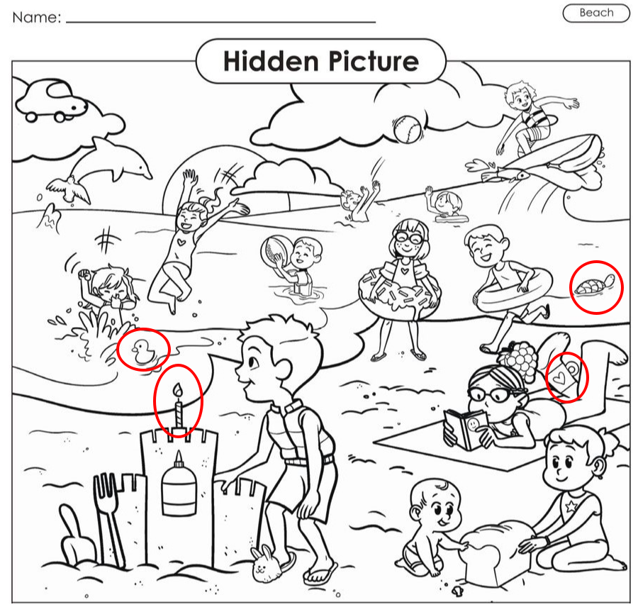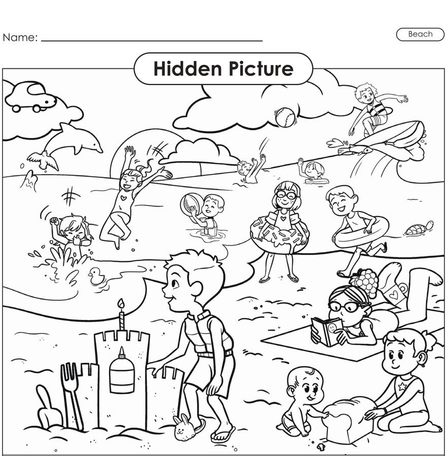 The beach — where sunshine, laughter, and the sound of waves come together to create the perfect summer escape. But look a little closer, and you might discover something more than seashells and sandcastles. In this delightful “hidden picture” scene, the beach becomes a playground of imagination, full of surprises waiting to be found. Kids splash in the surf, build sandcastles, and chase flying beach balls, while clever little shapes and objects hide in plain sight. It’s a visual puzzle wrapped in a story of summertime joy.