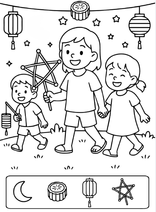 This Mid Autumn Festival hidden picture puzzle transforms a gentle evening walk into a calm and meaningful moment of discovery. Through simple line art, warm storytelling, and thoughtfully hidden shapes, it invites viewers to slow down, observe, and reconnect with a sense of quiet joy. Whether enjoyed as a puzzle, a coloring page, or a peaceful visual pause, this image reminds us that the most beautiful moments often reveal themselves only when we take the time to truly look.