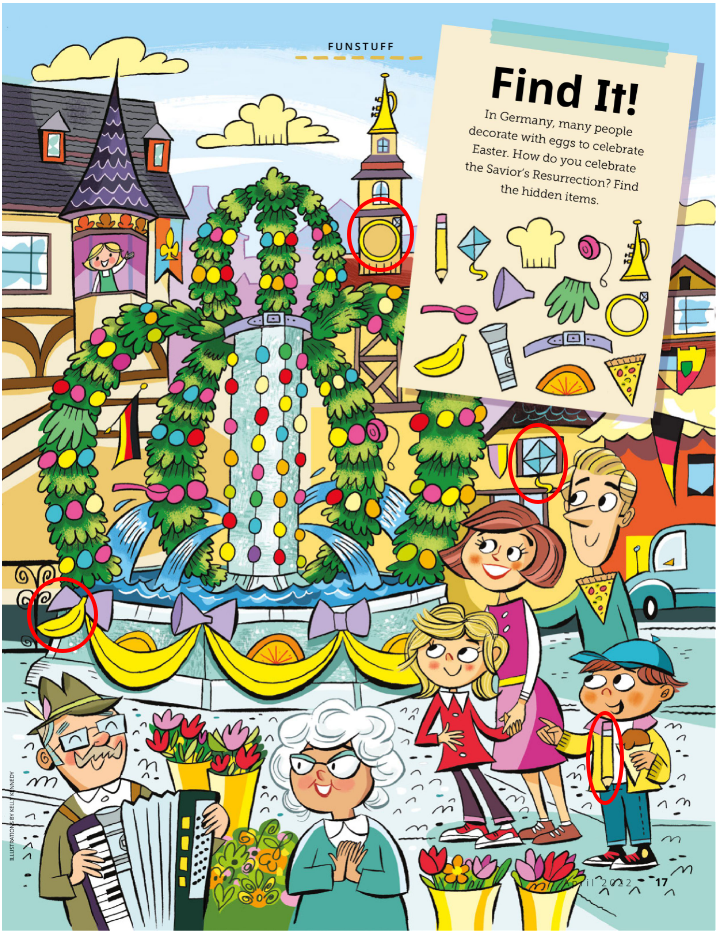 At first glance this image feels like a celebration frozen in time. A colorful German town square comes alive with Easter joy bright flowers smiling faces and a beautifully decorated fountain at the center. But look closer and you realize this is not just a festive illustration. It is an interactive hidden object scene that invites curiosity sharpens focus and pulls the viewer right into the heart of European spring traditions.