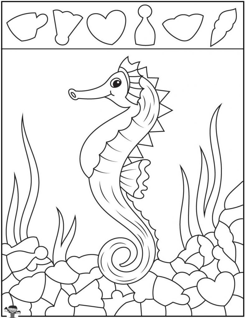Using a seahorse as the main character makes the image emotionally appealing. People want to spend time with it. They want to color it carefully and search the scene slowly instead of rushing through.