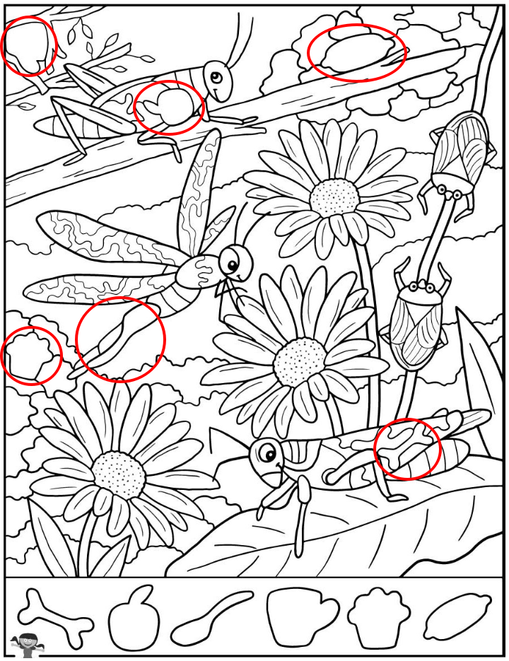 Children sharpen their attention span, develop hand-eye coordination if they choose to color the picture, and expand their understanding of nature. They also get a confidence boost when they successfully find hidden elements.