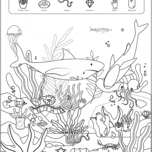 Find the turtle, octopus, starfish and fishhook.
