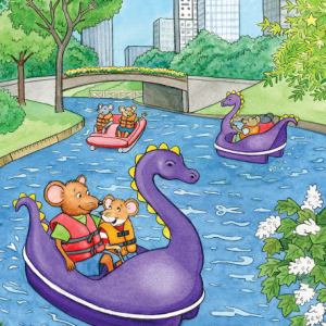 At first glance, this picture feels like a storybook moment come to life. A calm river winds through a green city park. Friendly mice float happily across…