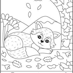 At first glance, this image feels like a soft bedtime story frozen on paper. A gentle fox curls up beneath a tree, eyes relaxed, tail wrapped close…