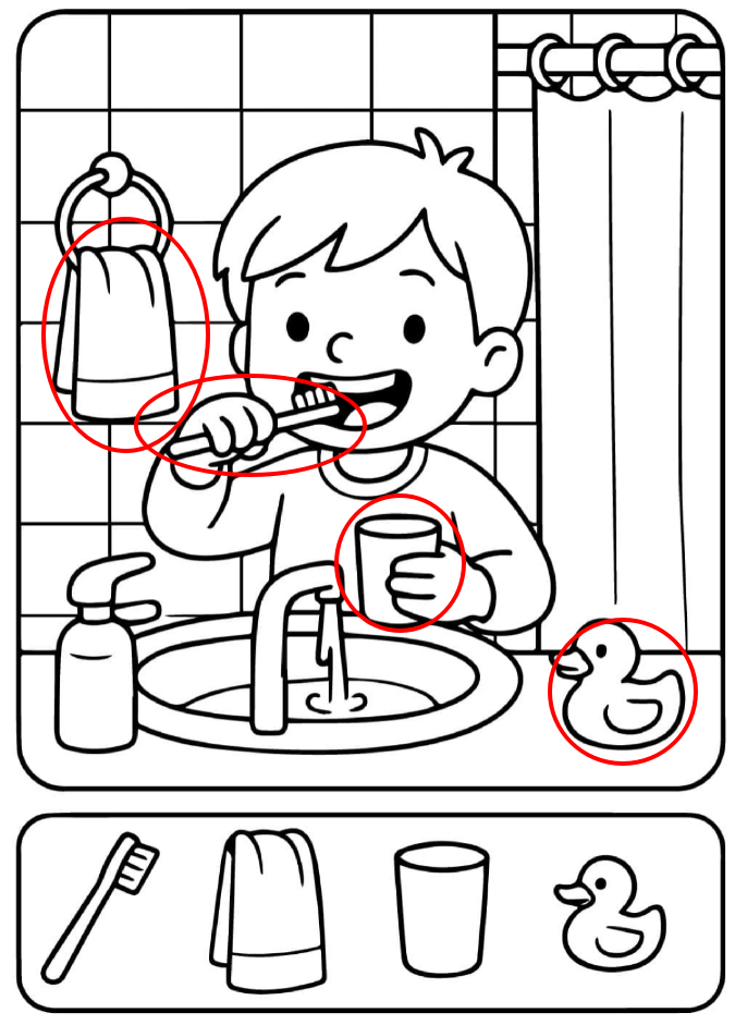 This hidden object puzzle of a child brushing his teeth reminds us that even the simplest moments in life hold hidden treasures. With a toothbrush in one hand and a cup in the other, this cheerful morning scene becomes a playground for the eyes and the mind. The next time you go about your daily routine, take a moment to look closer—you might just find something extraordinary hidden in the ordinary. After all, every day begins with a smile, a little curiosity, and maybe a secret waiting to be discovered.