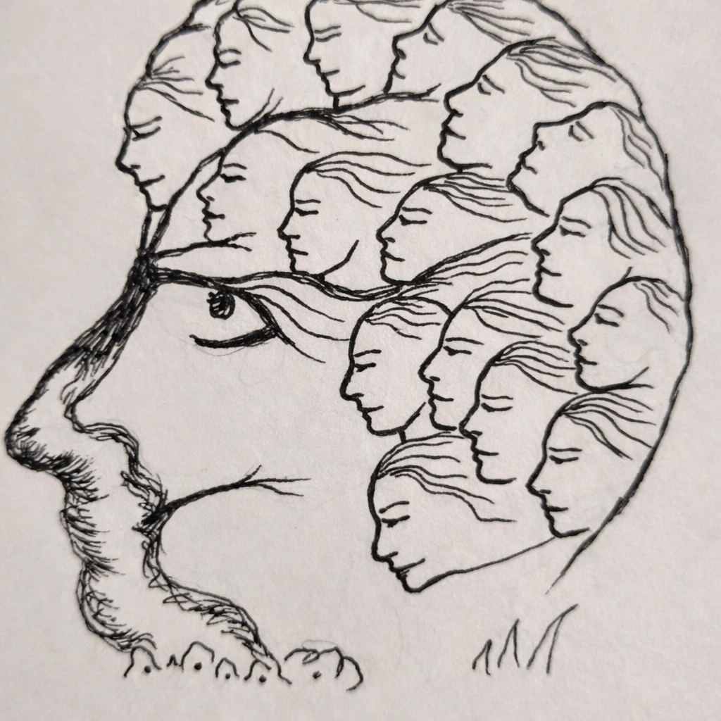 This drawing feels like a quiet conversation with yourself. It captures how the human mind works—never just one voice, never just one perspective, always many.