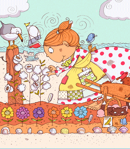 There is something instantly magical about this illustration. One look, and you are pulled into a gentle world where imagination grows as freely as flowers. A young girl kneels by the seaside, carefully tending a colorful garden, while the ocean breeze swirls around her like a soft lullaby. This is not just a picture. It is a story waiting to be told.