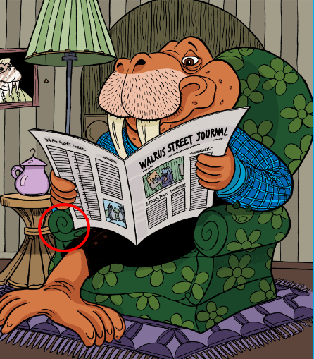 - The rug beneath the walrus features distinct lines, which may hide small shapes cleverly integrated into the stitching.