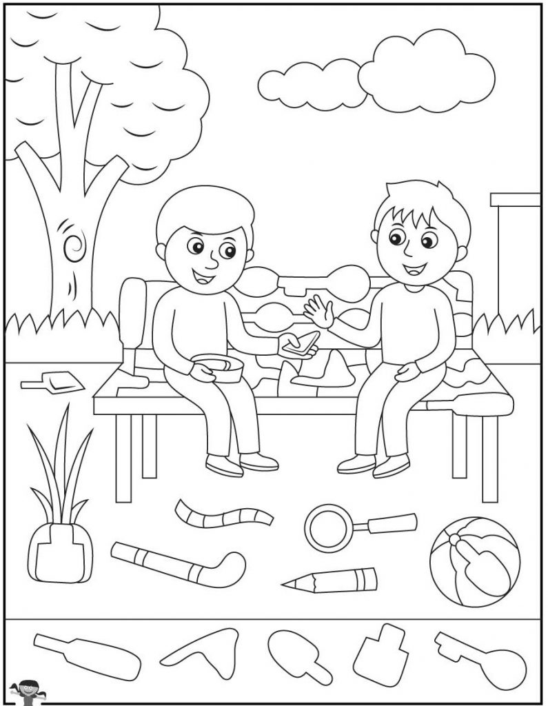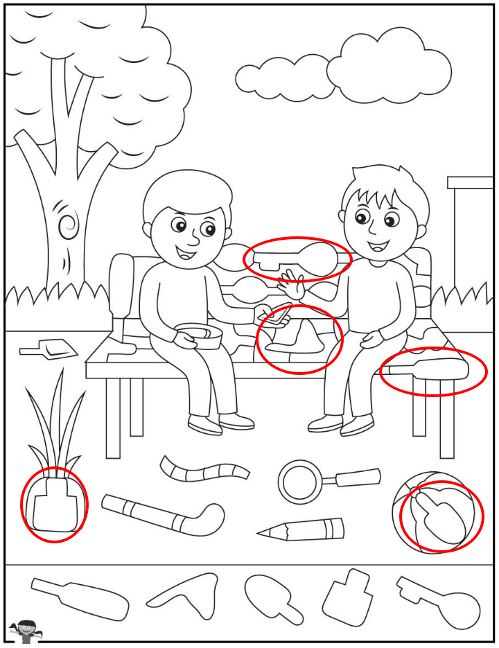This hidden object puzzle of kids on a park bench proves that simple images can deliver deep engagement. Behind the friendly scene lies a powerful exercise in observation focus and patience. The clean line art the familiar setting and the cleverly disguised objects work together to create an experience that feels calm yet challenging playful yet mentally stimulating. Whether you solve it alone or share the search with others this puzzle turns a quiet moment into an active mental adventure and that is exactly why hidden object images like this continue to capture attention and hold it.