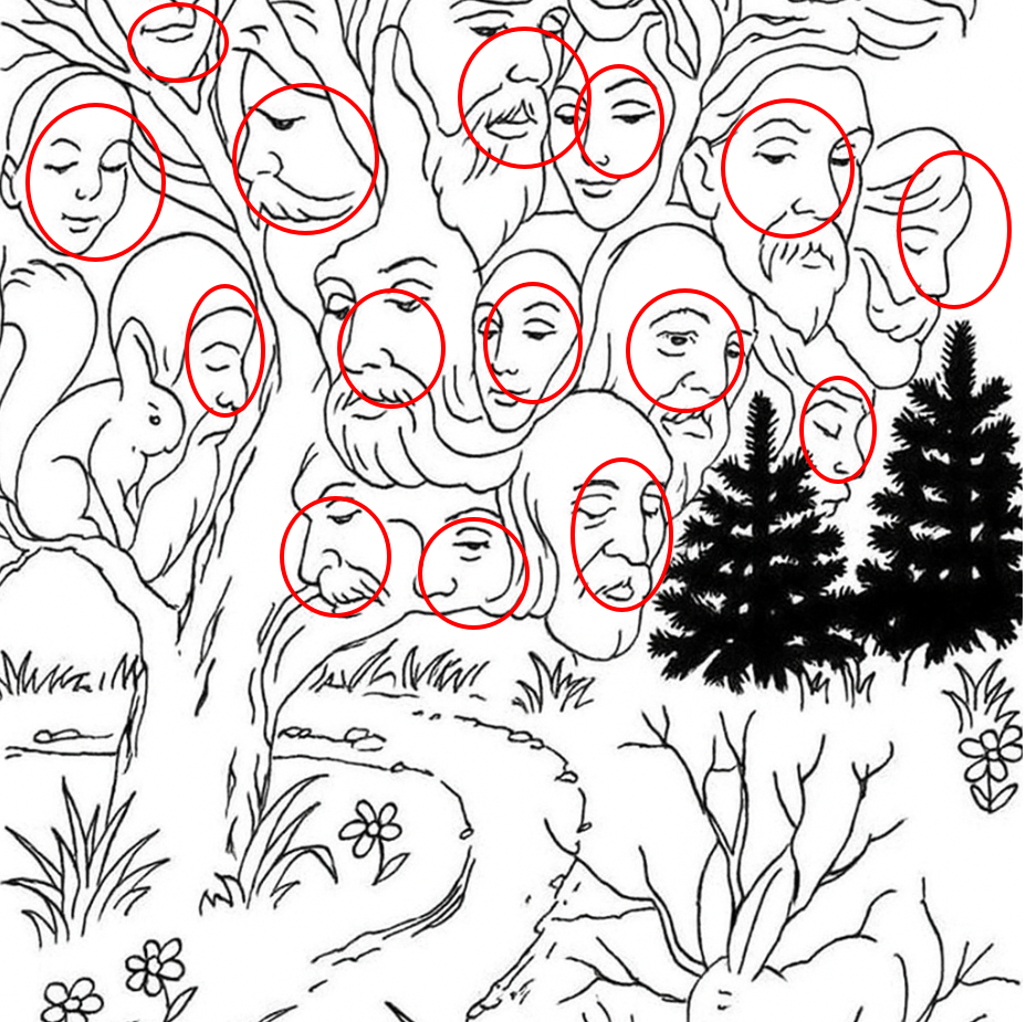 Spot all the hidden faces in 18 seconds — if you can, your vision is incredible!