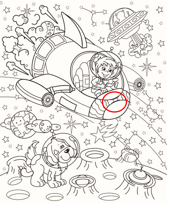 The astronaut’s ship is the centerpiece of this adventure. Look closely at the panels, windows, and control dials—could there be a hidden symbol, a small planet, or even a secret creature peeking out? The spaceship’s curves and shadows create perfect hiding spots for sneaky shapes.