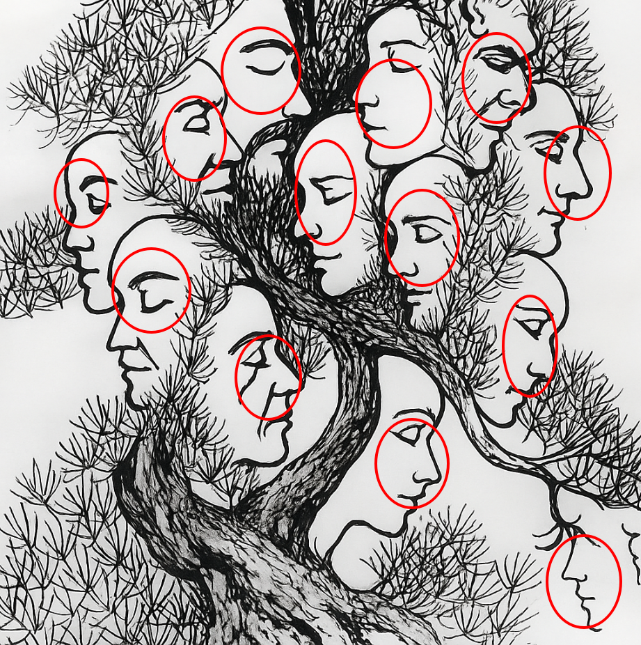 There are images that make you pause, look twice, and then stare in awe—and the surreal artwork above is exactly that kind of masterpiece. At first glance, it appears to be a tree with winding branches and textured bark. But the more you look, the more faces begin to emerge from the wood and foliage, almost as if the tree itself carries the memories, emotions, and wisdom of countless lives.