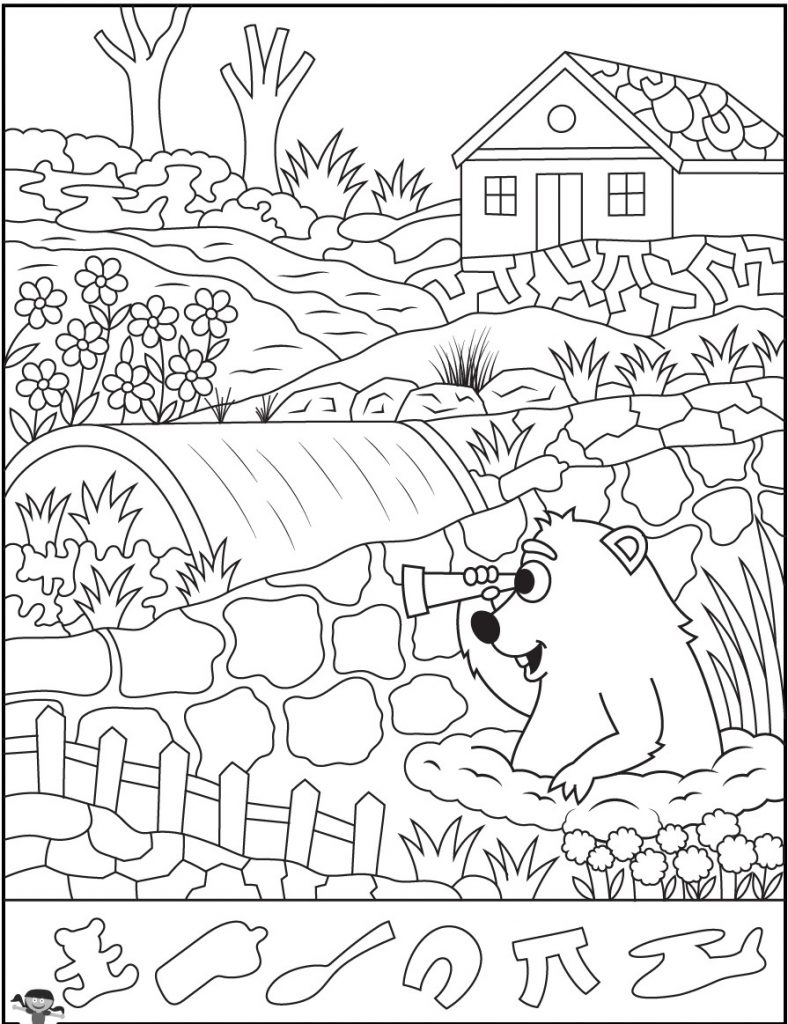 At the center of the illustration sits a friendly creature—likely a groundhog or a beaver—peeking out of its cozy burrow. But this isn’t just any burrow moment. This curious critter is holding a little telescope, scanning its surroundings as if on a secret mission. Its big smile and bright eyes bring instant joy, making the scene feel lighthearted and fun.