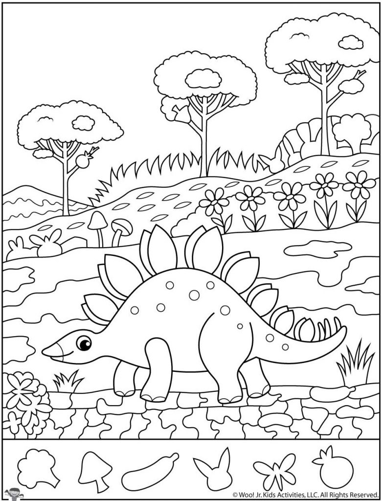 Dinosaur Hidden Objects Coloring Page: A Fun Prehistoric Puzzle That Boosts Focus and Creativity