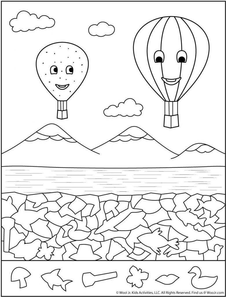 There’s something magical about hot air balloons. They float gently, smile back at you, and invite your imagination to take flight. Now mix that dreamy sky scene with a clever hidden-object puzzle, and you’ve got an activity that hooks kids and adults alike. This image isn’t just a cute illustration—it’s a playful brain workout disguised as fun.