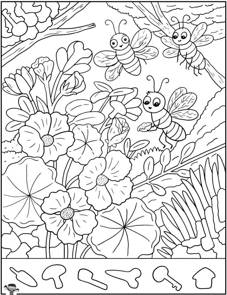 Children can invent stories about the bees, imagine their conversations, or even color the scene in bold, beautiful shades.