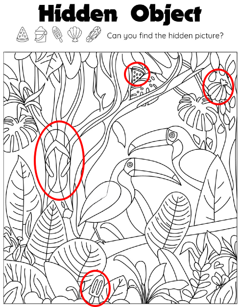 Tropical Treasures: Discovering Hidden Objects in a Lush Rainforest Scene